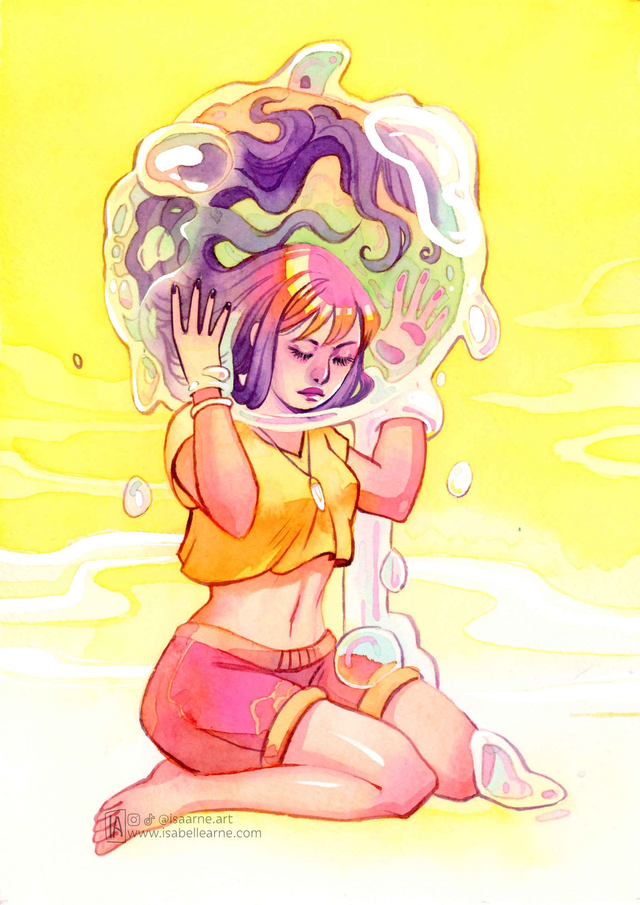 Aquarelle Originale - Fille bulle