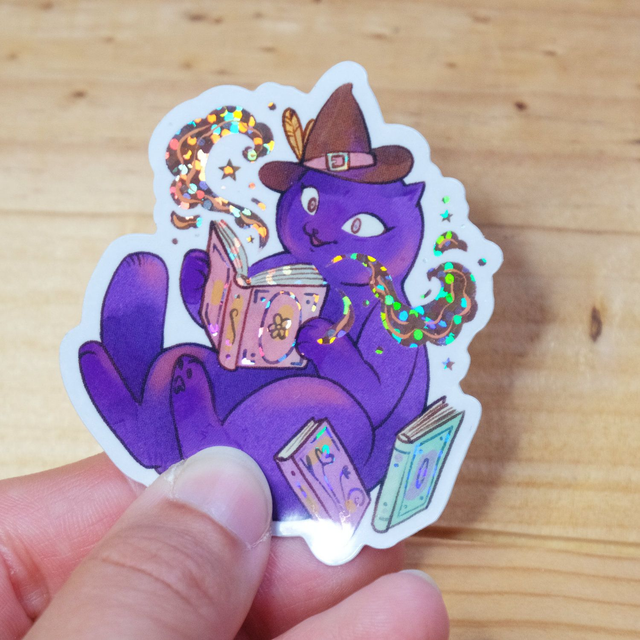 Sticker Pailleté - Kitty lectrice